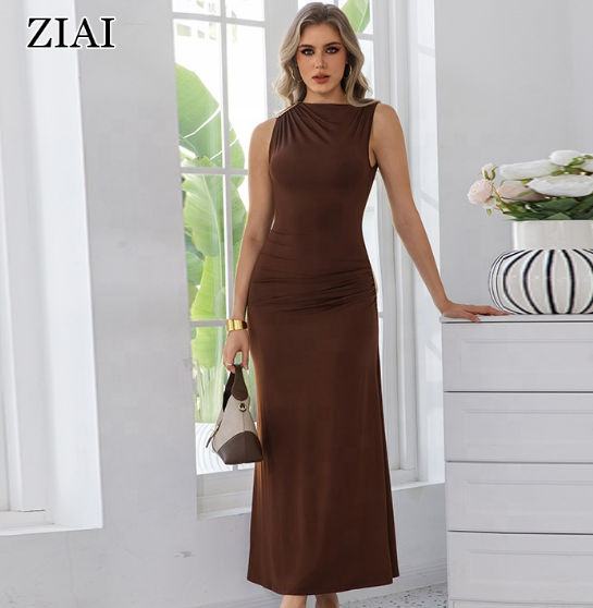 + Free ShippingPleated Fitted Bust-hugging Dress for Women New Fashion One-shoulder Sleeveless Dress